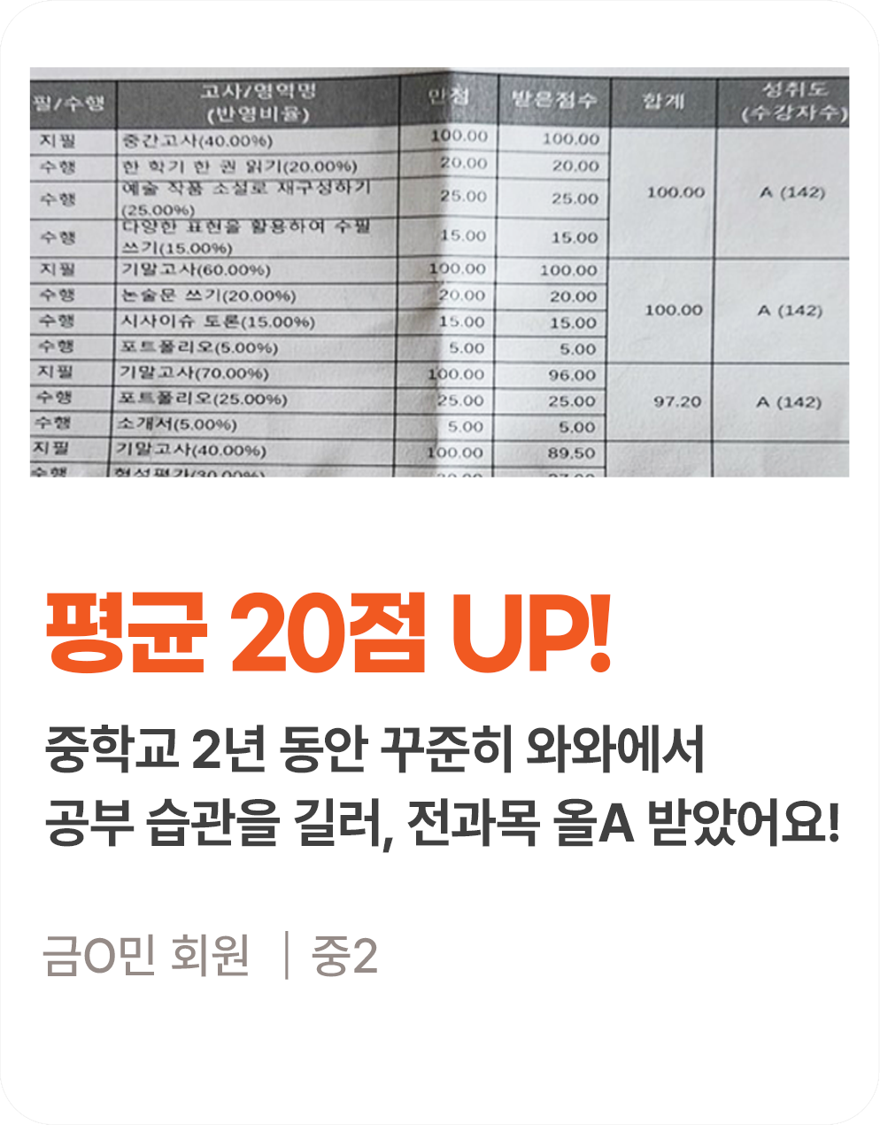 이미 많은 학생들이 성적 상승을 경험했습니다!
